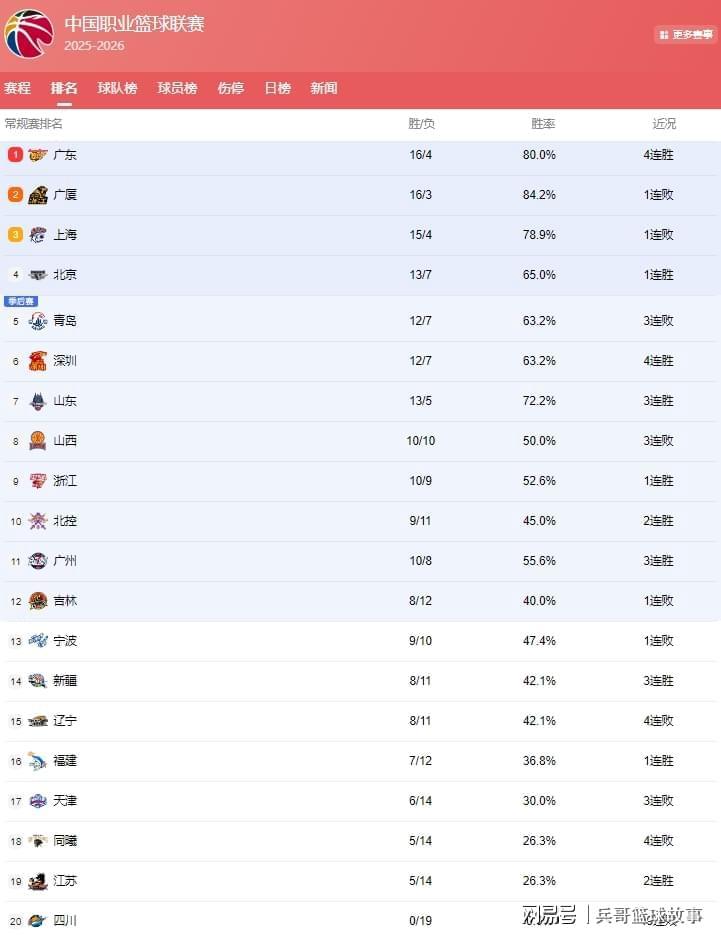 星空体育中国-CBA最新排名!差距仅1场,3队抢第1;山东冲前4,辽宁跌出季后赛
